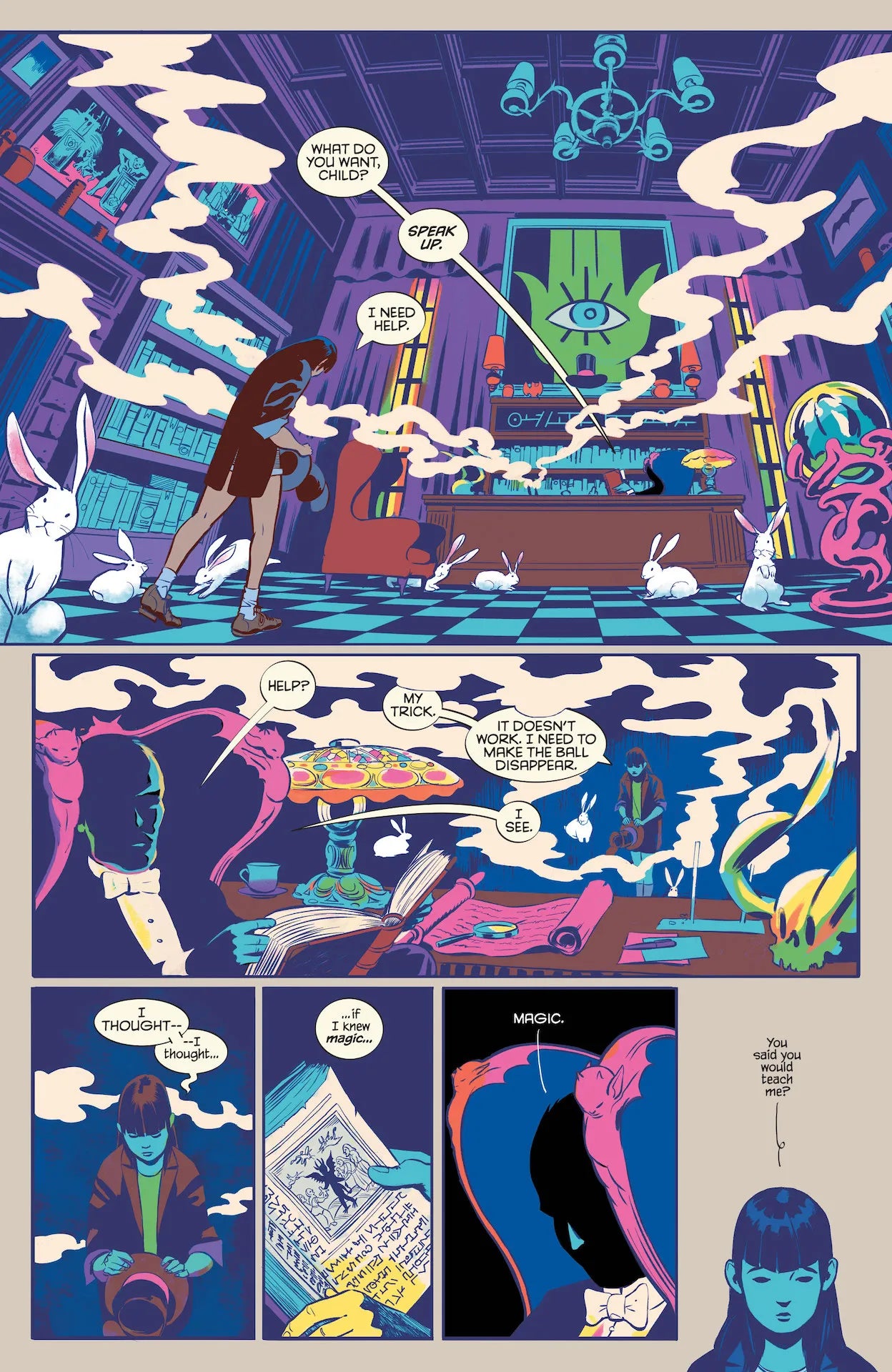 The Black Label format shines here — the expanded page size and luxurious production give Rodríguez room to stretch his imagination. From soft, pastel flashbacks to bold, kaleidoscopic magic sequences, his work fluidly shifts between grounded emotion and cosmic wonder. Every ounce of real estate on the page is used to its fullest effect, creating a reading experience that feels cinematic and deeply immersive.